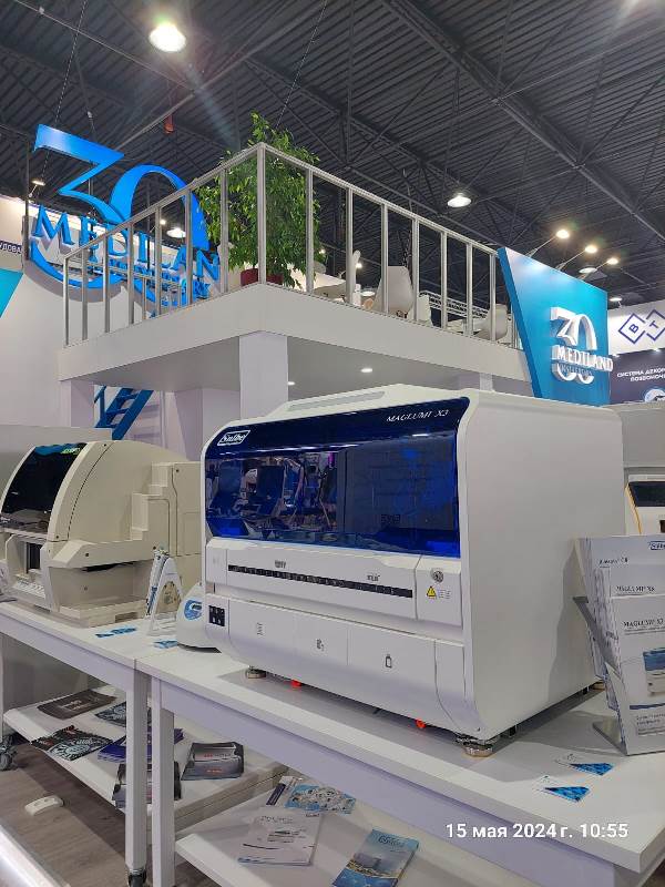 Большой интерес посетителей вызвал новый высокопроизводительный ИХЛА анализатор X8 от нашего партнёра компании Snibe. За время работы выставки на стенде находились представители компании Snibe, которые отвечали на вопросы наших посетителей, провели небольшой мастер- класс по работе с анализаторами и рассказали о новых диагностических параметрах в области ИХЛА диагностики.