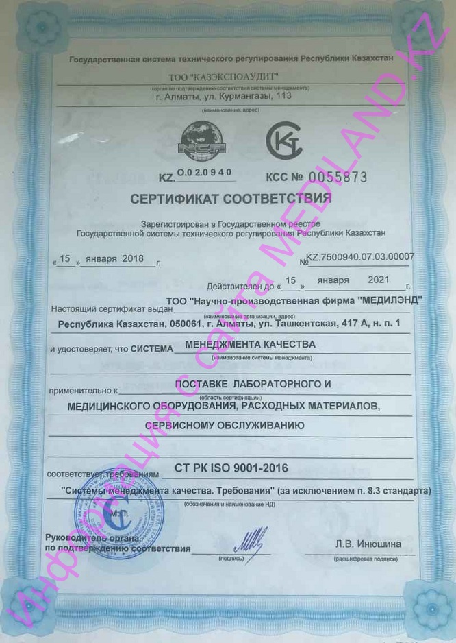 Сертификация проводилась Органом по подтверждению соответствия систем менеджмента ТОО "КАЗЭКСПОАУДИТ"