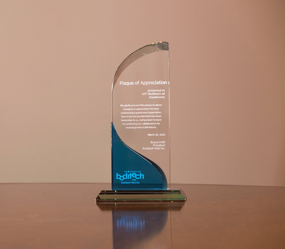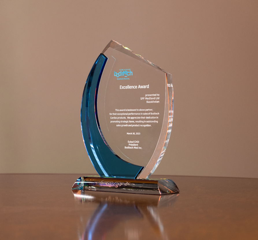 - Excellence Award – Награда за Превосходство. Эта награда присуждается за исключительные результаты продаж продуктов кардиопанели Boditech Med Inc.