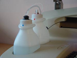 Рабочей жидкостью служит дистиллированная вода с добавлением 2% экстрана. Емкость контейнеров - 2700 мл. Предусмотрен контроль уровня жидкости по весу, система прибора имеет фильтр, предотвращающий попадание частиц в систему, а также защитный клапан на контейнере с отходами.