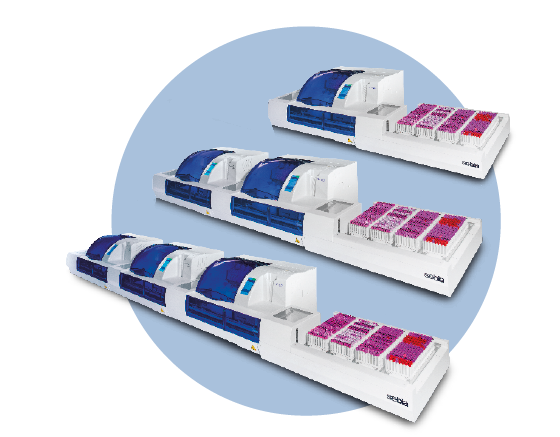 Уход / Автономия - Емкость загрузки образцов: от 120 образцов с бортовой загрузкой до 600 образцов с дополнительным загрузчиком пробирок