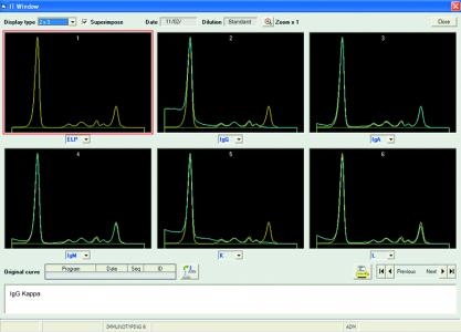 MINICAP IT - иммунотипирование в сыворотке крови и в моче для скрининга на наличие моноклональных гаммапатий (скрининг IgG, IgA, IgM, kappa и lambda, типирование М-градиента)