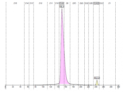 Результаты. Результатом анализа является количественная оценка HbA1c, выраженная в единицах IFCC (ммоль/моль) и/или NGSP (%) в зависимости от выбора оператора. А также полный гемоглобиновый профиль пациента, свидетельствующий о нормальном или аномальном синтезе гемоглобина.
