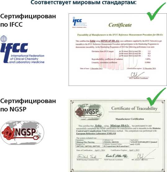 Метод капиллярного электрофореза Sebia стандартизован и имеет сертификаты NGSP и IFCC, подтверждающие точность количественной оценки Hb A1c. Коэффициент вариации составляет менее 1%, что обеспечивает надежный мониторинг у пациентов с сахарным диабетом.