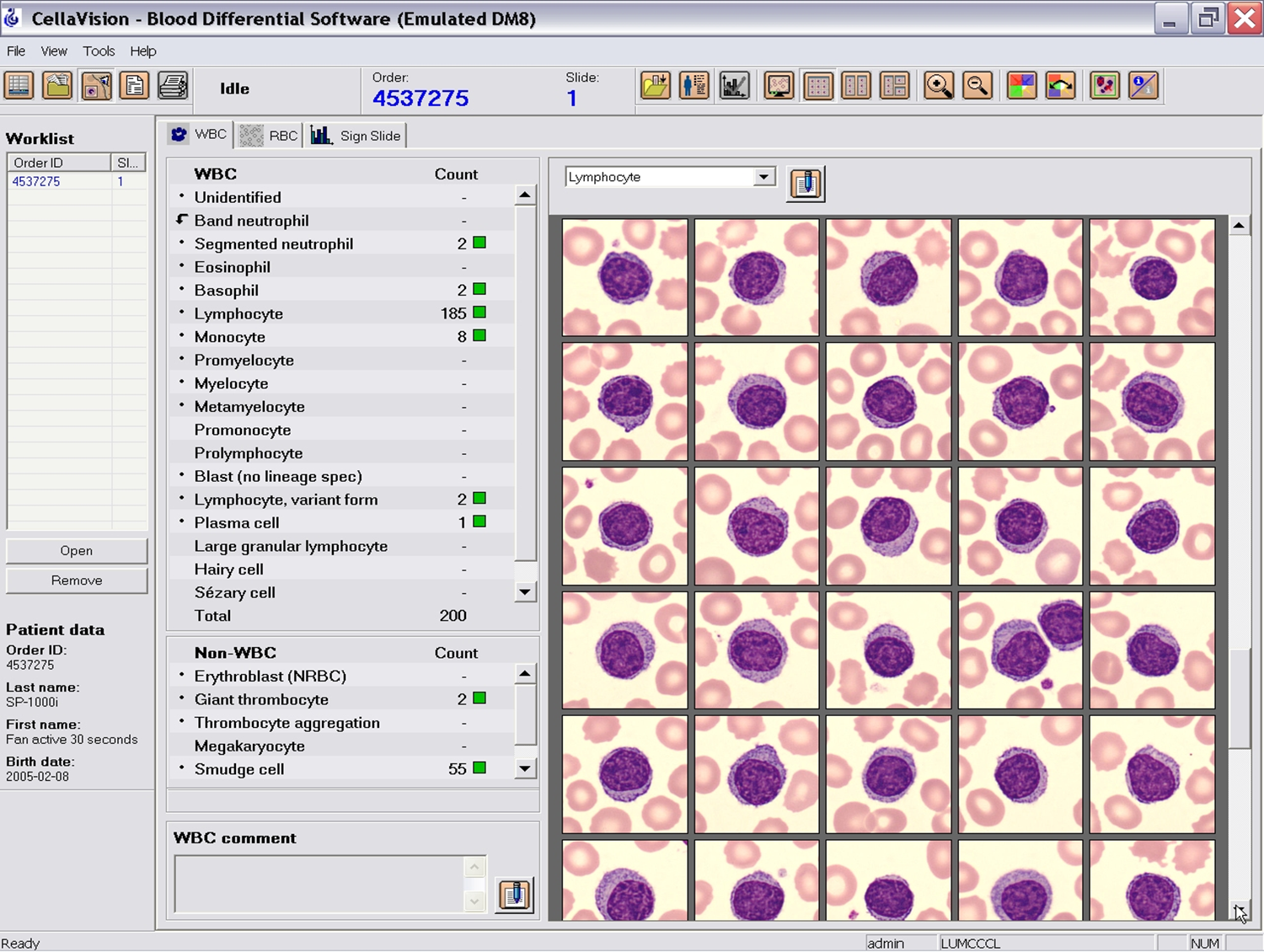 DI-60 – это автоматизированная система, позволяющая проводить анализ мазка крови (жидкости тела). DI-60 состоит из автоматического микроскопа, высококачественной цифровой камеры и компьютерной системы, которая собирает и осуществляет предварительную классификацию клеток согласно одному из предустановленных клеточных классов: палочкоядерные нейтрофилы, сегментоядерные нейтрофилы, базофилы, моноциты, промоноциты, пролимфоциты, эозинофилы, лимфоциты, промиелоциты, миелоциты, метамиелоциты, лимфоциты (вариантные формы), плазматические клетки, большие гранулярные лимфоциты, волосатые клетки, клетки Сезари, бласты, эритробласты (NRBC), гигантские тромбоциты, тромбоцитарные агрегаты, мегакариоциты.